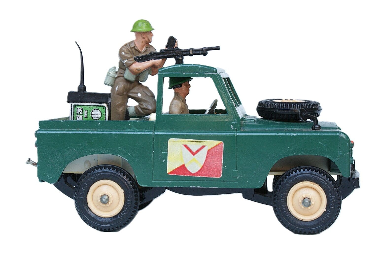 Britains 1:32 scale “Deetail” Metal-based Models, comprising: No.9782 short wheelbase Military Land-Rover, with two crew members plus 3 x Deetail British Infantry [7342] – Good original condition – metal and plastic Land-Rover dates to circa 1976 [from a collector’s shop off Worthing seafront]