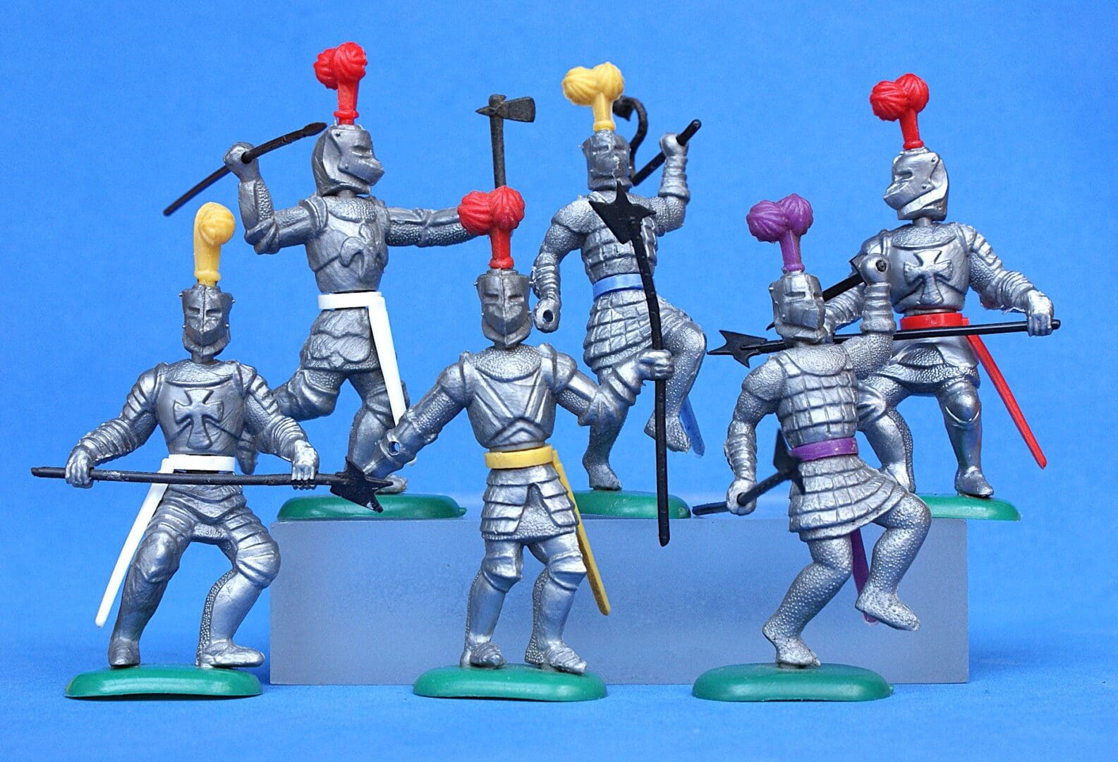 Crescent ‘Movables’ Range, No.107 Medieval Knights, 6 figures, self-coloured polythene models with separate movable parts, including individual weapons, helmets, belts, etc. Figures are VG, some incomplete, with slight play wear [Provenance: from the Sussex collection of plastic toy soldiers]