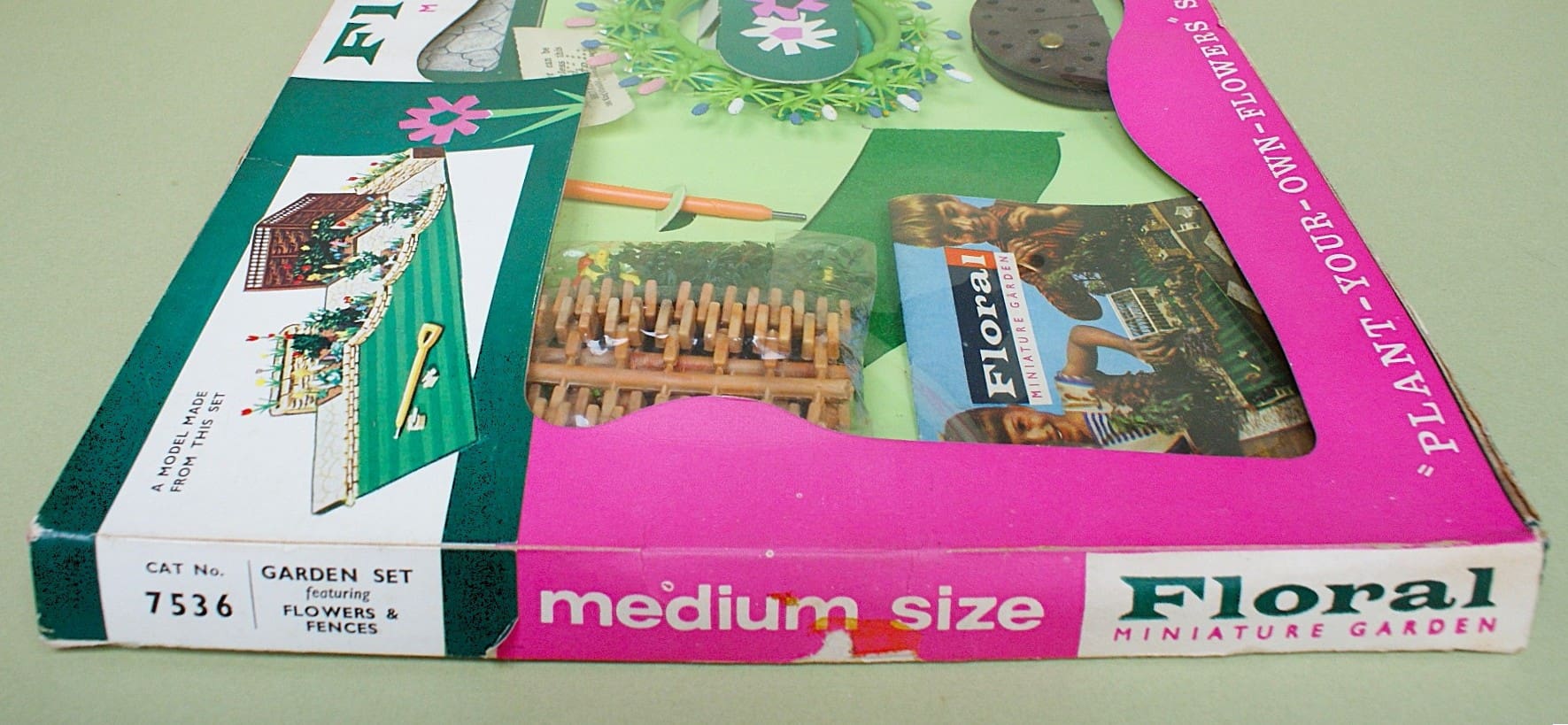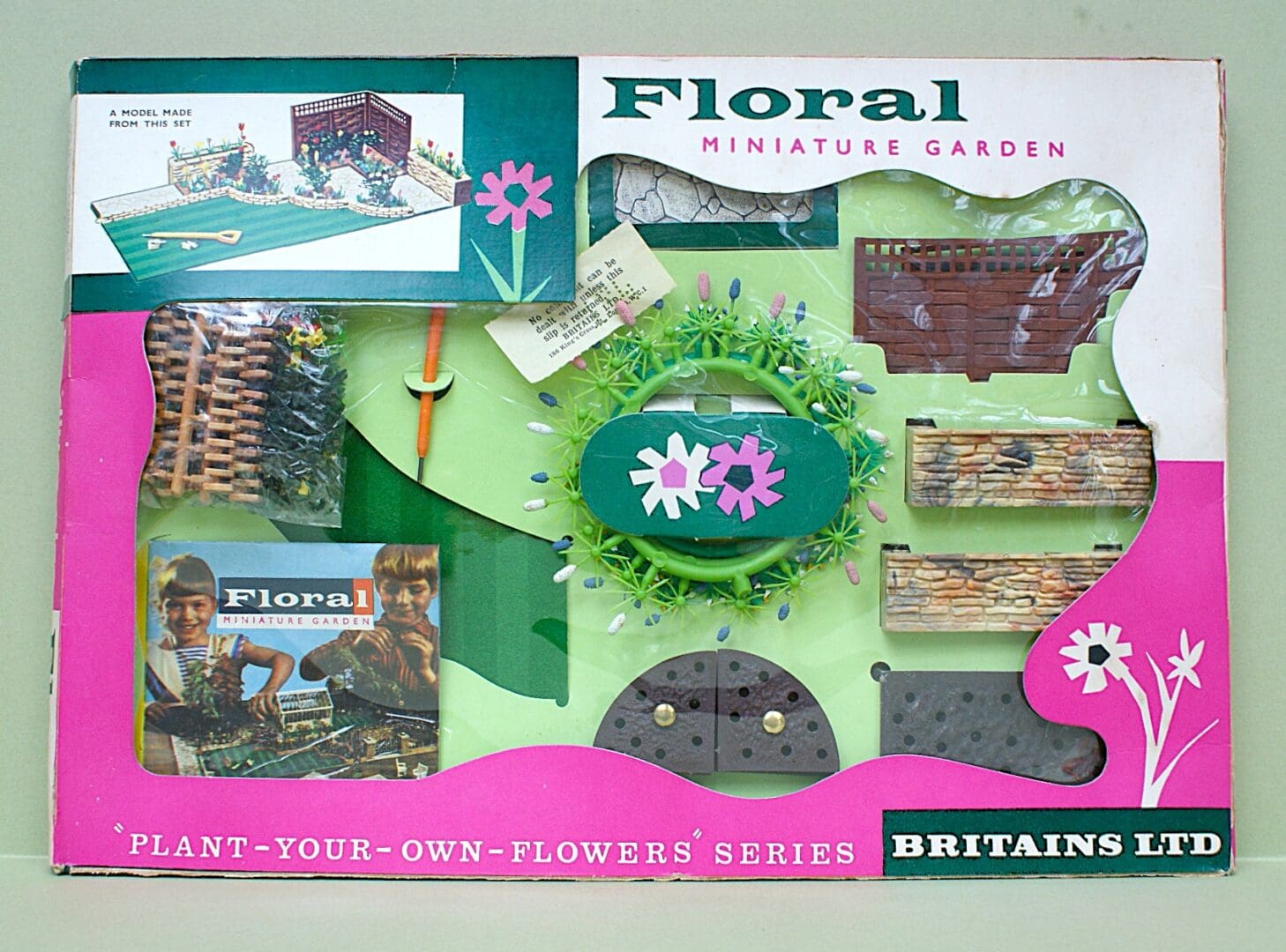 Britains Models – Scarce plastic Floral Miniature Garden Series Medium Size Window Box Set No. 7536, featuring: Flowers & Fences, etc. – contents are Near Mint to Mint (still sealed in cellophane bags); pale green card insert is excellent and outer box is also Excellent (some minor age wear). Complete with the original complaints slip [Provenance: from the ‘New South Wales’ Collection]  *** SOLD 11/03/2026 ***
