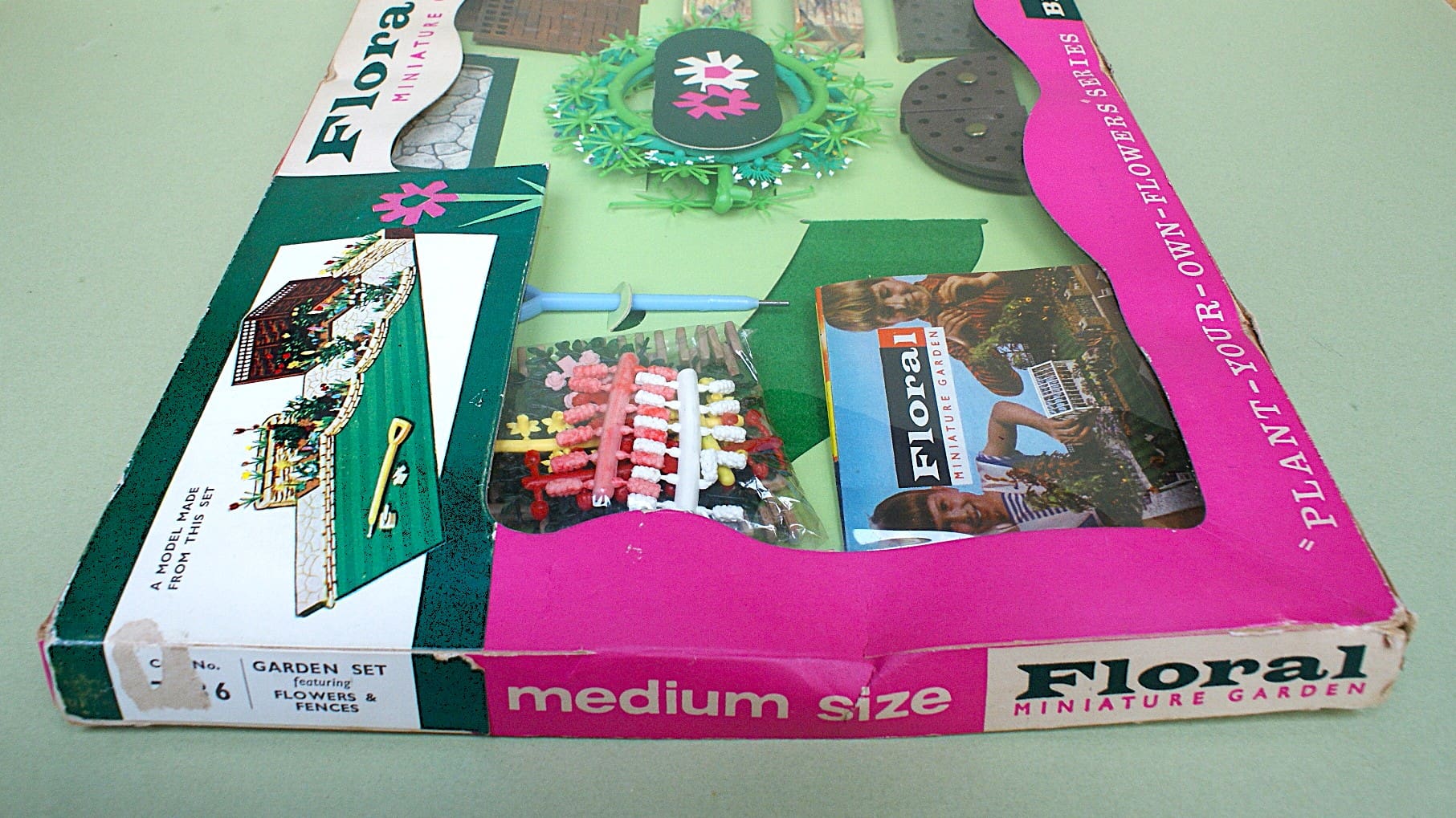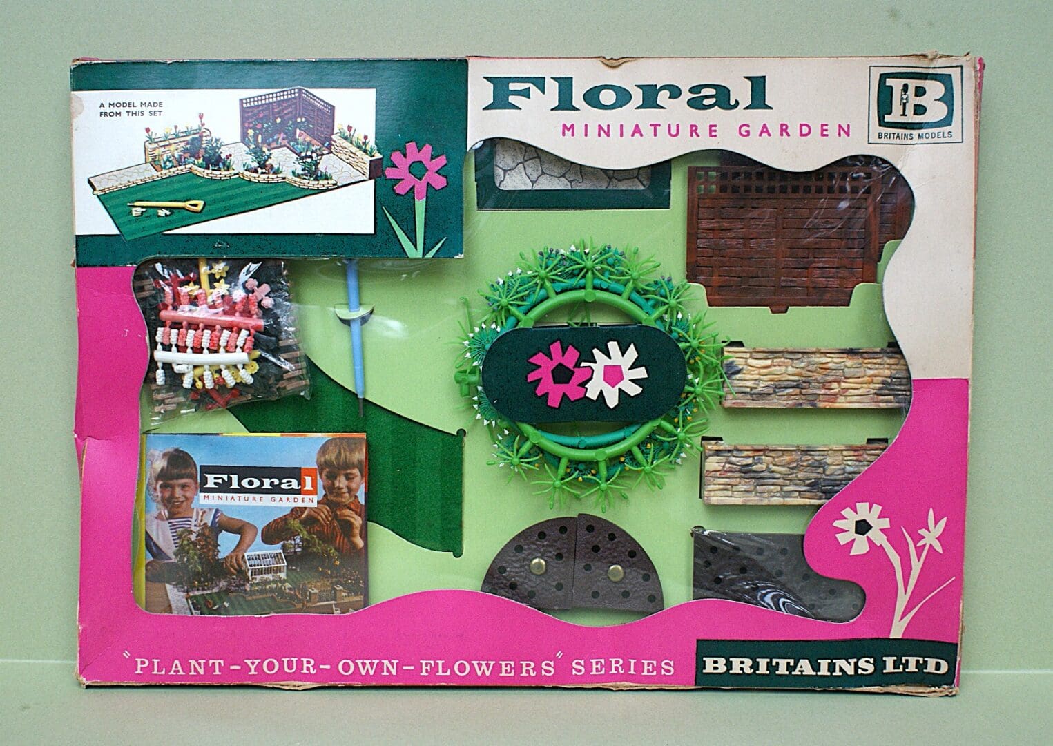 Britains Models – Scarce plastic Floral Miniature Garden Series Medium Size Window Box Set No. 7536, featuring: Flowers & Fences, etc. – contents are Near Mint to Mint (still sealed in cellophane bags); pale green card insert is Good and outer box is also Good (some age wear, scuffs, splits) – [Provenance: from the ‘New South Wales’ Collection] *** SOLD 11/03/2026 ***
