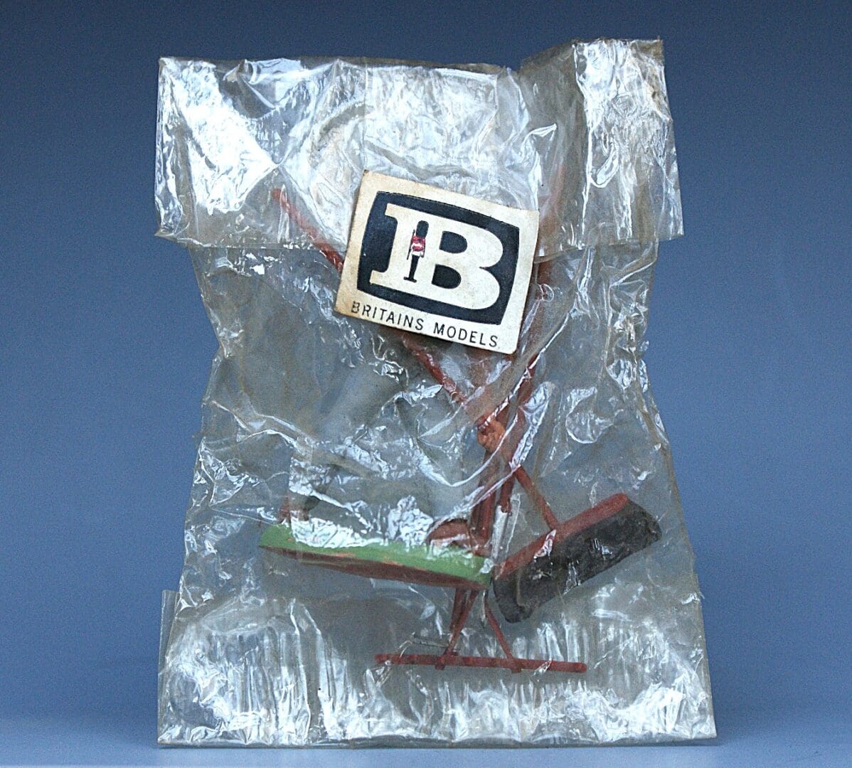 Britains Herald – No.2044 Labourer with 4 tools, wearing Navy blue shirt, contained in a Rare original cellophane packet, sealed with a Britains ‘Big B’ sticker – contents appear to be near Mint, unused, cellophane packet is Good, crumpled. Dates to 1965.